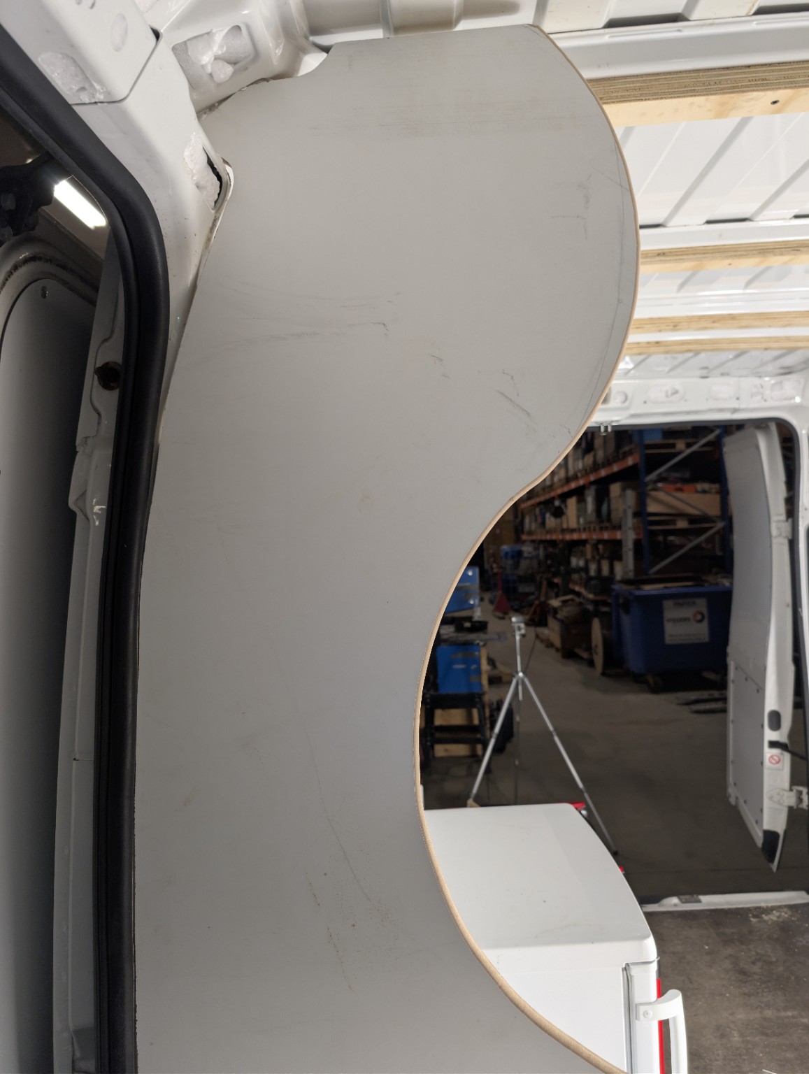 We hebben de eerste wand geplaatst het begin van de indeling van onze mobiele stroopwafelkeuken. Het voelt ineens een stuk echter nu de ruimtes zichtbaar worden!