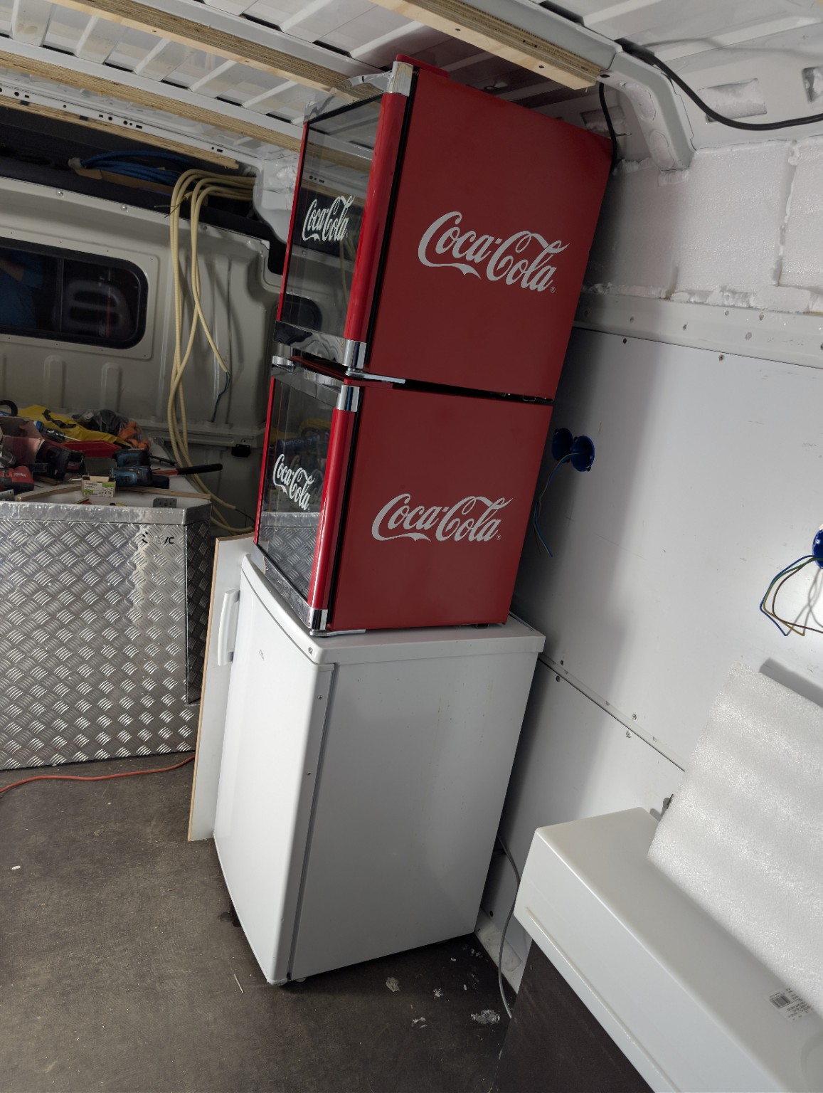 Daarnaast staan de drie koelingen netjes op elkaar, met een mooi klassiek Coca-Cola-design dat straks zorgt voor die herkenbare, gezellige uitstraling. 🥶🧃