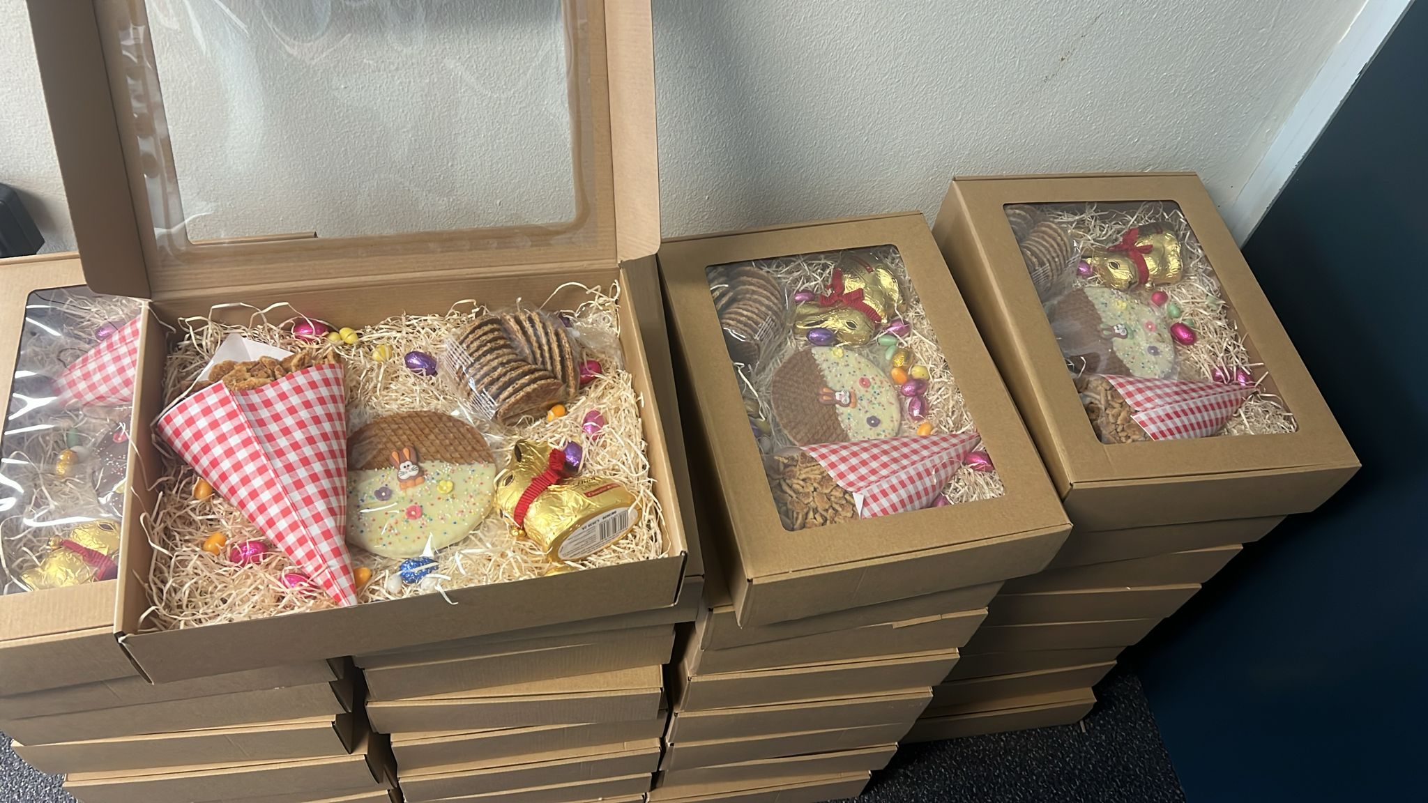 Wat een eer om voor een grote klant als De Kok Xpress | DKX aan de slag te mogen gaan. Maar liefst 75 luxe paasboxen hebben onlangs onze bakkerij verlaten, klaar om hun klanten te verrassen.